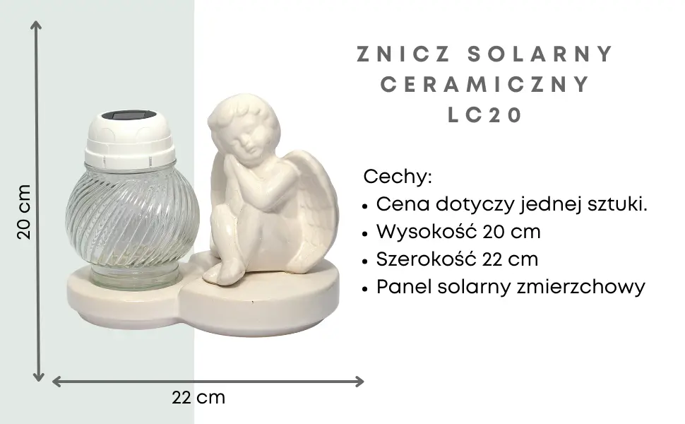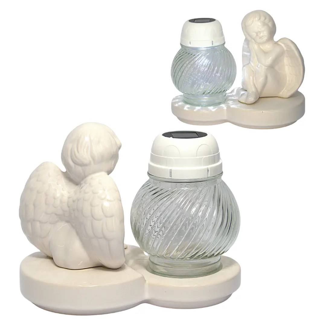 ✨ Znicz Solarny Ceramiczny LC20 – biały anioł i światło pamięci