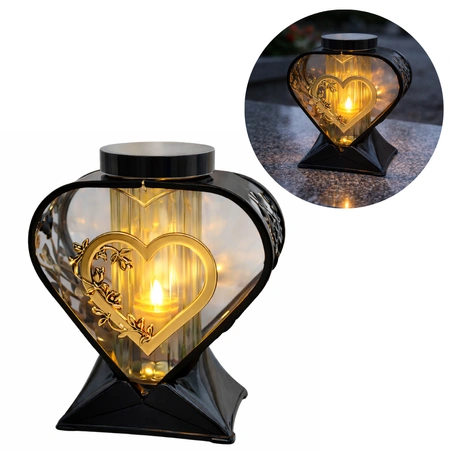 Lampion solarny LED LL91 czarny serce czerwony klasyczny znicz złoty