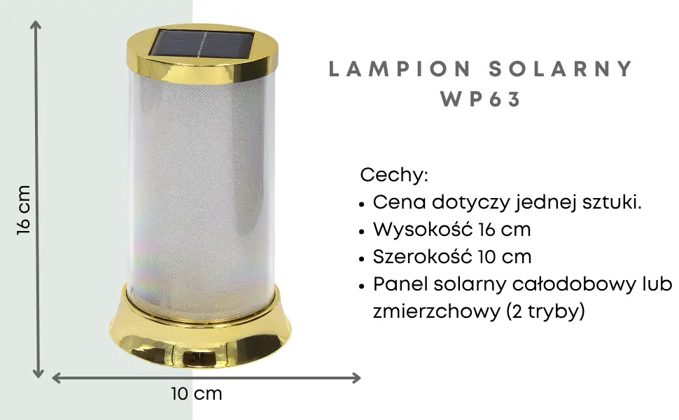 Znicz solarny WP63 lampion LED złoty kryształowy efekt 2 tryby