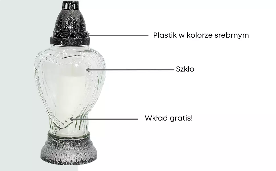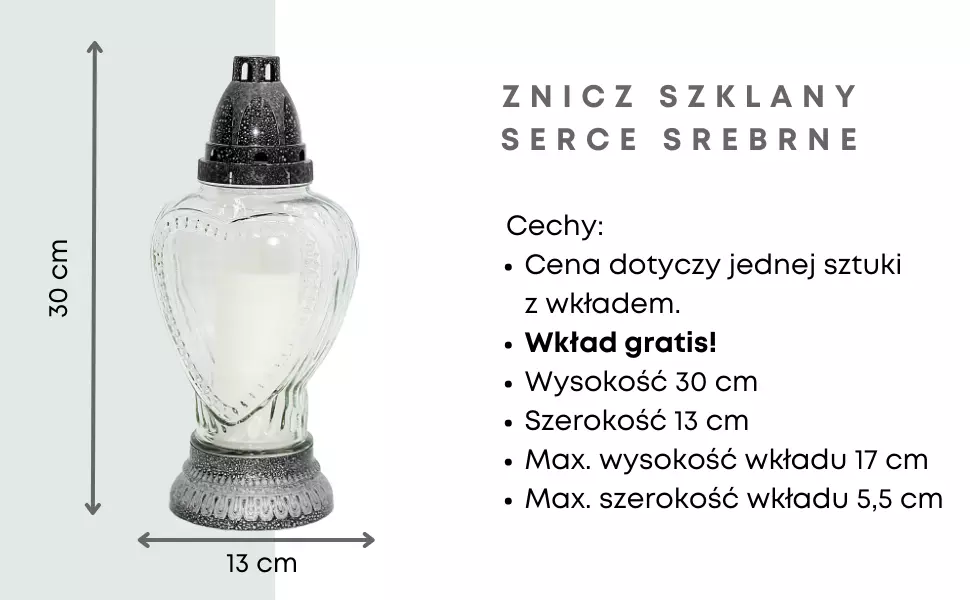 Znicz Szklany Serce Srebrne - Specyfikacja