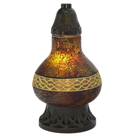 Elegancki znicz w stylu witrażowym, w brązowo-złotym kolorze, doskonały do każdego wnętrza lub na cmentarz. Wykonany z dbałością o szczegóły, z dekoracyjnymi elementami witrażu, które nadają mu nowoczesny i wyjątkowy charakter.